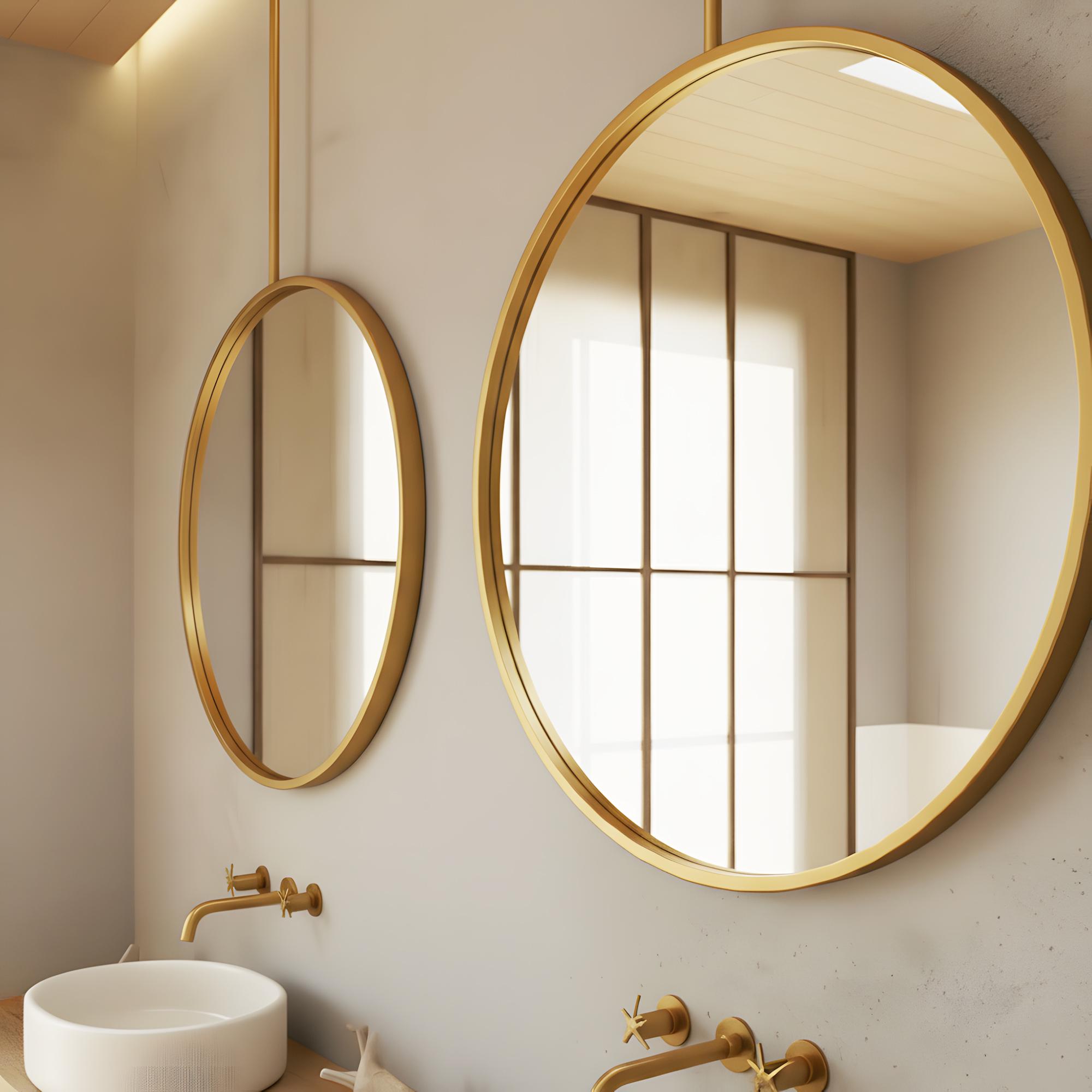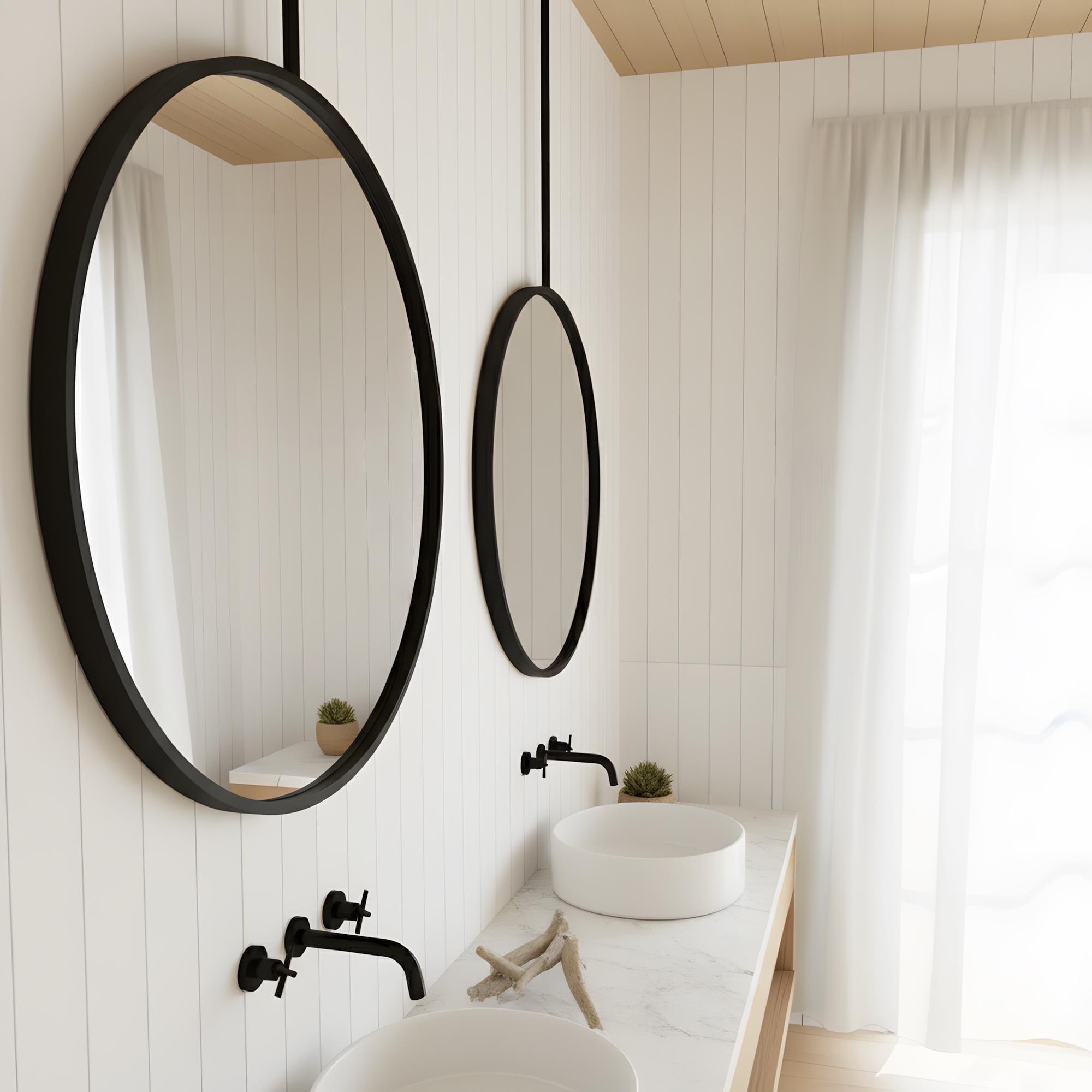 Ceiling Mounted Round Mirror | Modern Hanging Metal Frame Mirror