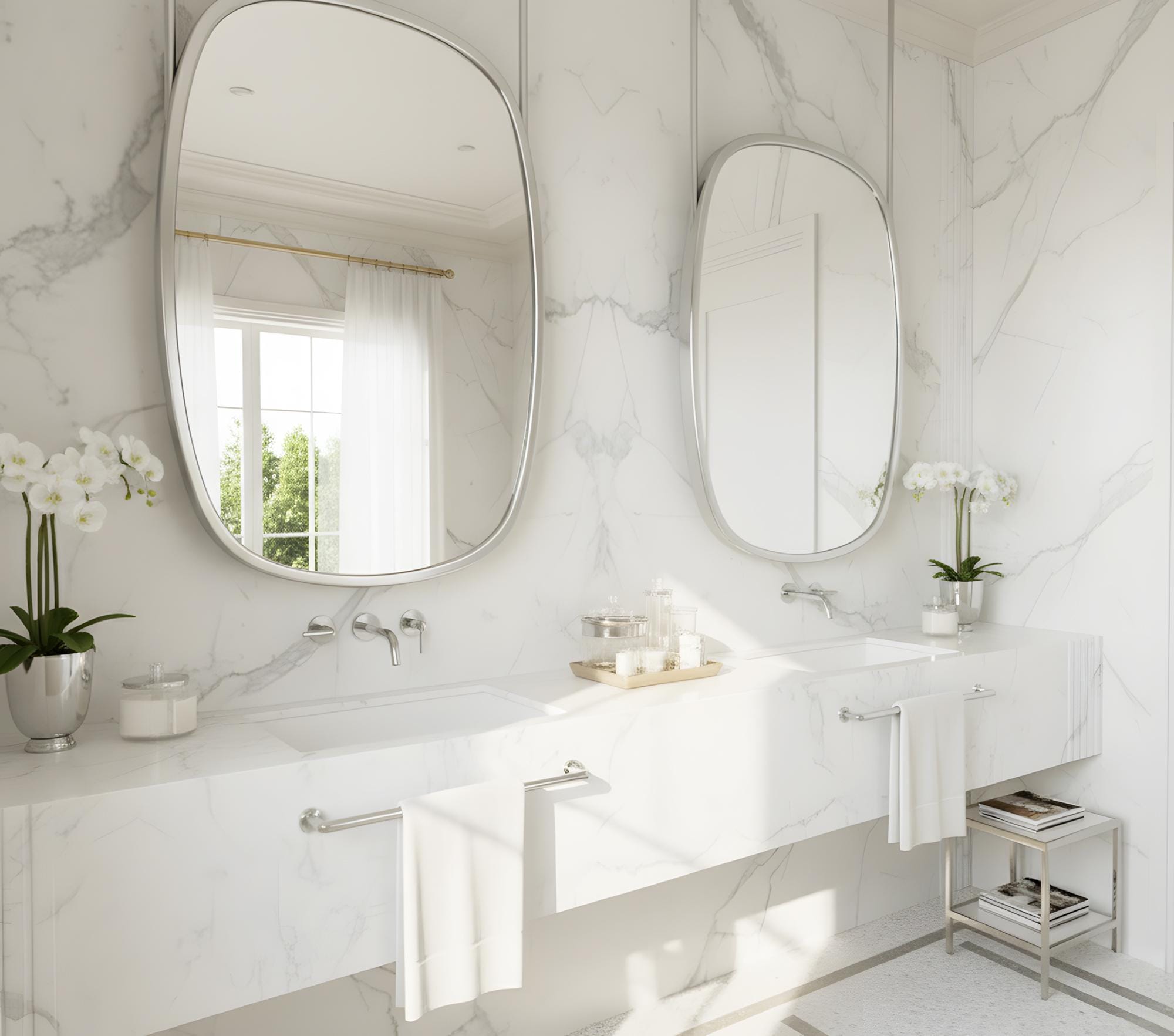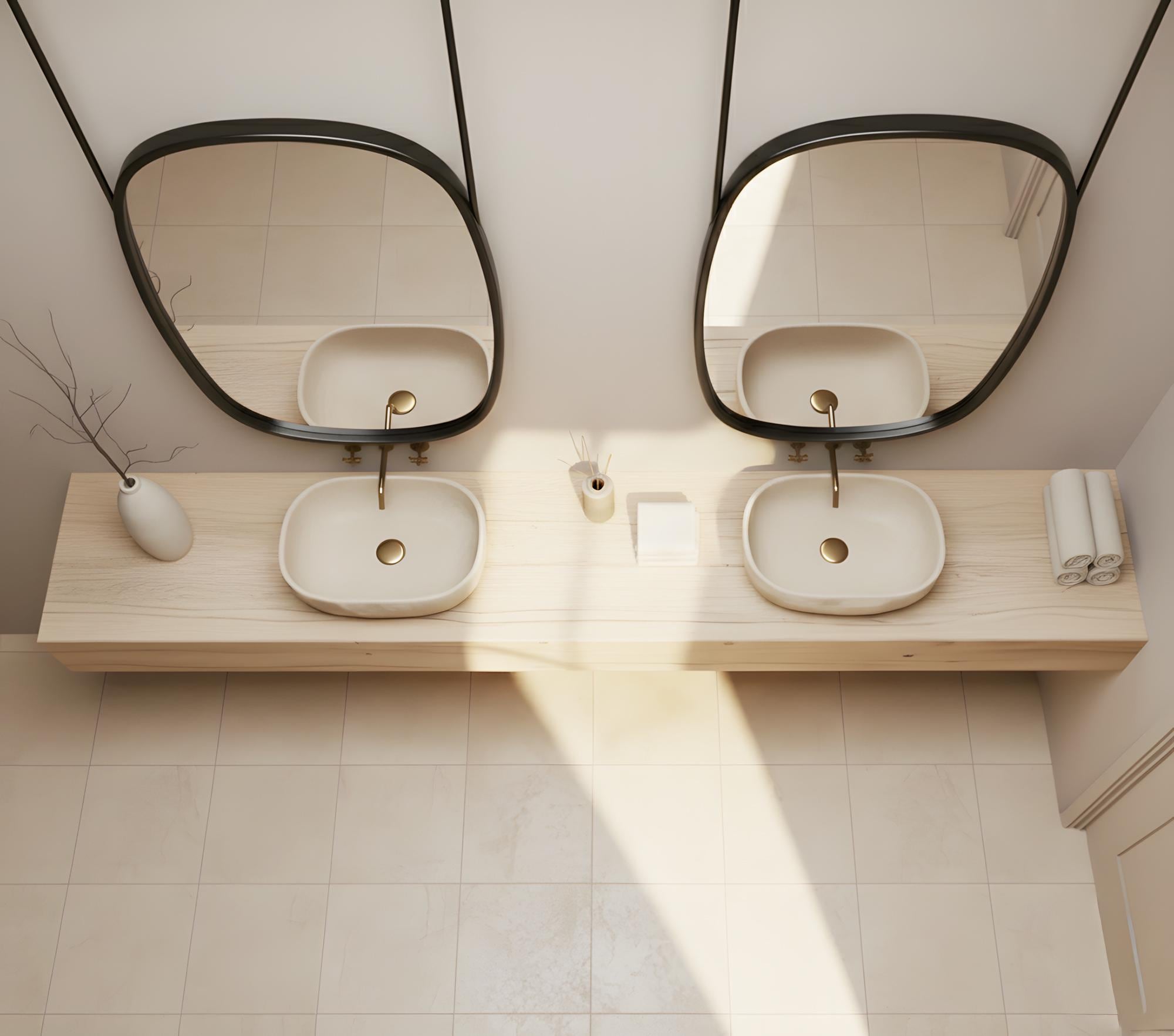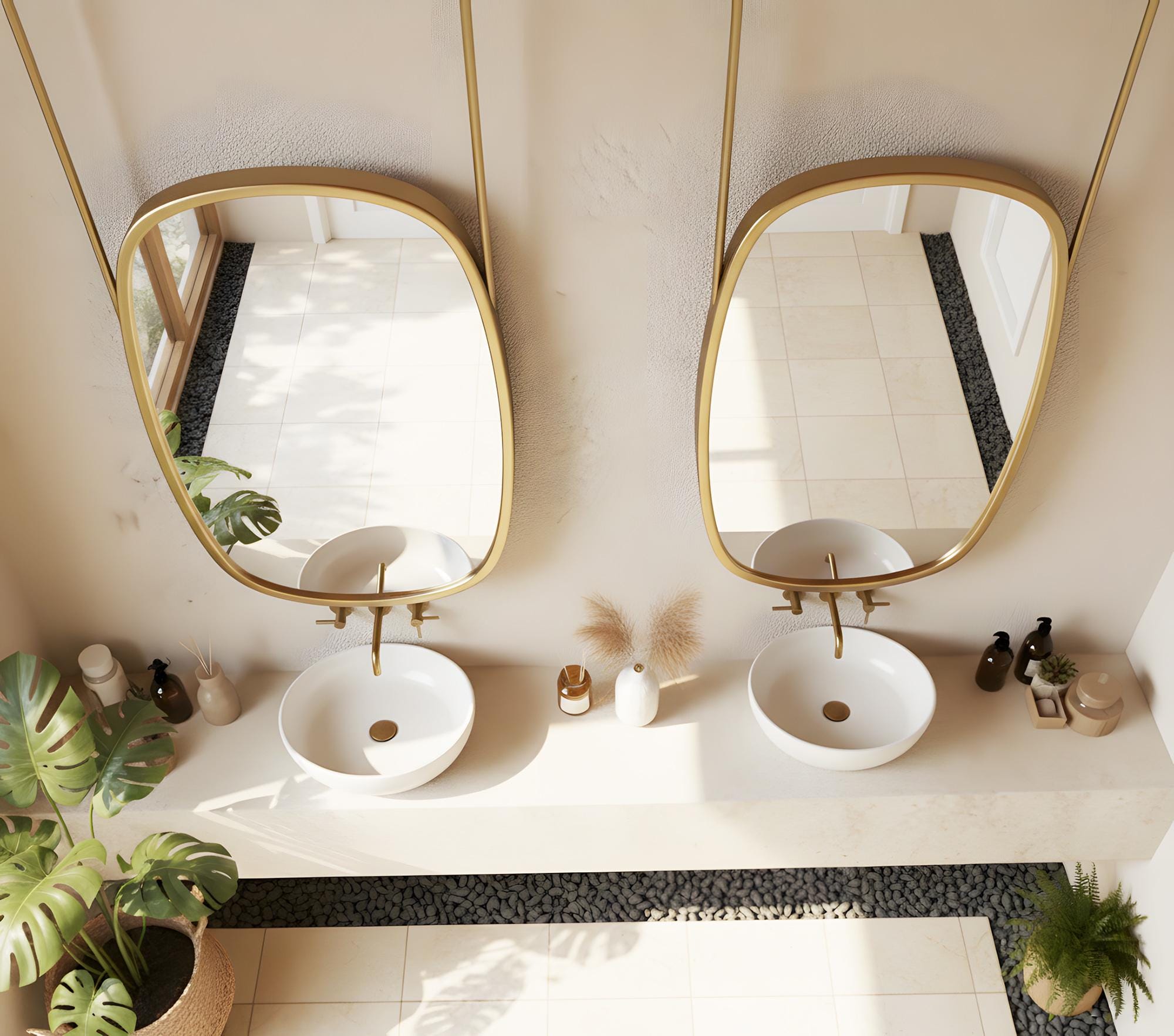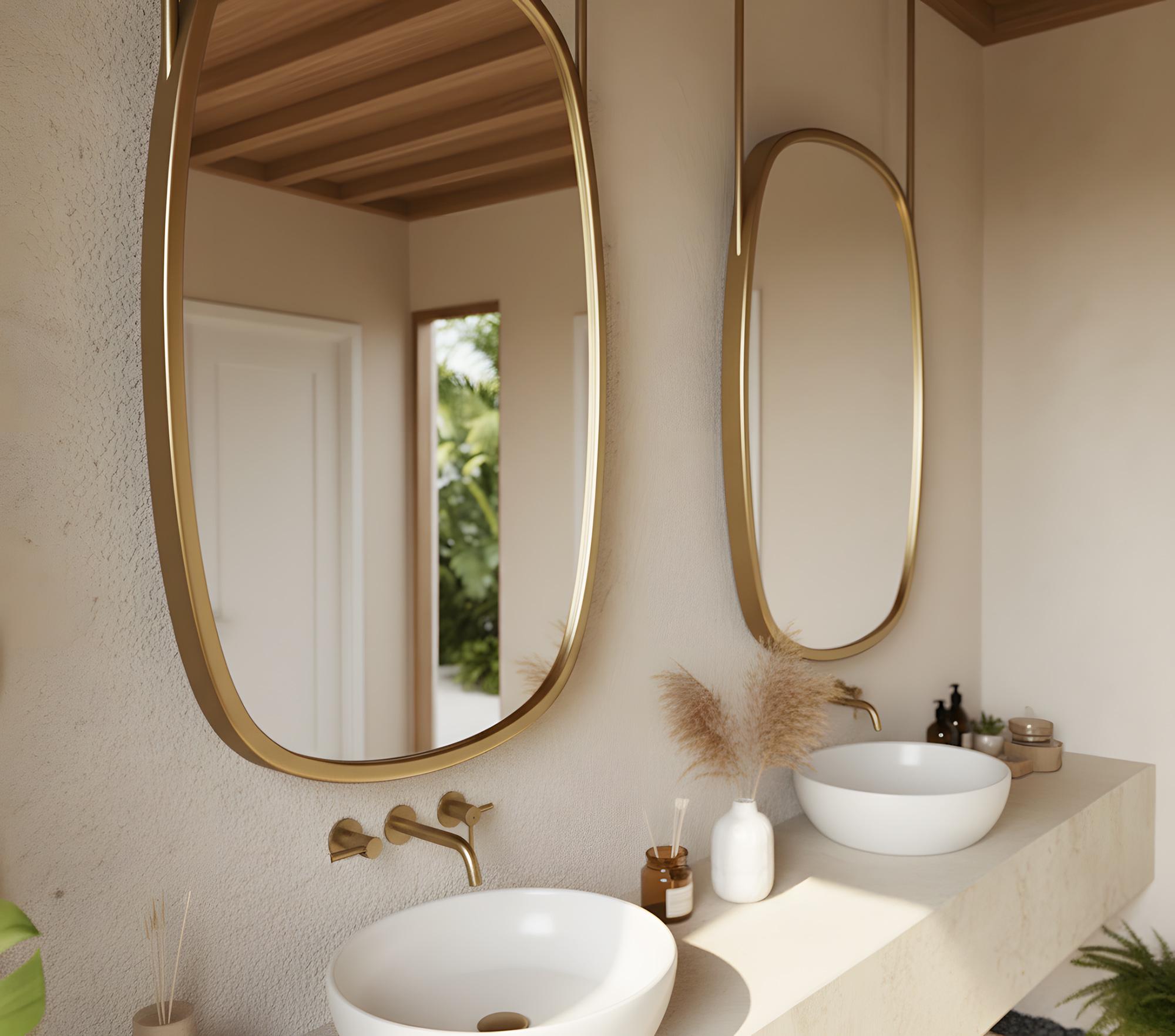 The premium metal frame provides durability and a refined finish, while the soft, asymmetrical shape brings a stylish, artistic feel. Perfect for double vanities, spa-inspired bathrooms, boutique hotels, or anyone looking to add a luxurious statement piece to their home.
