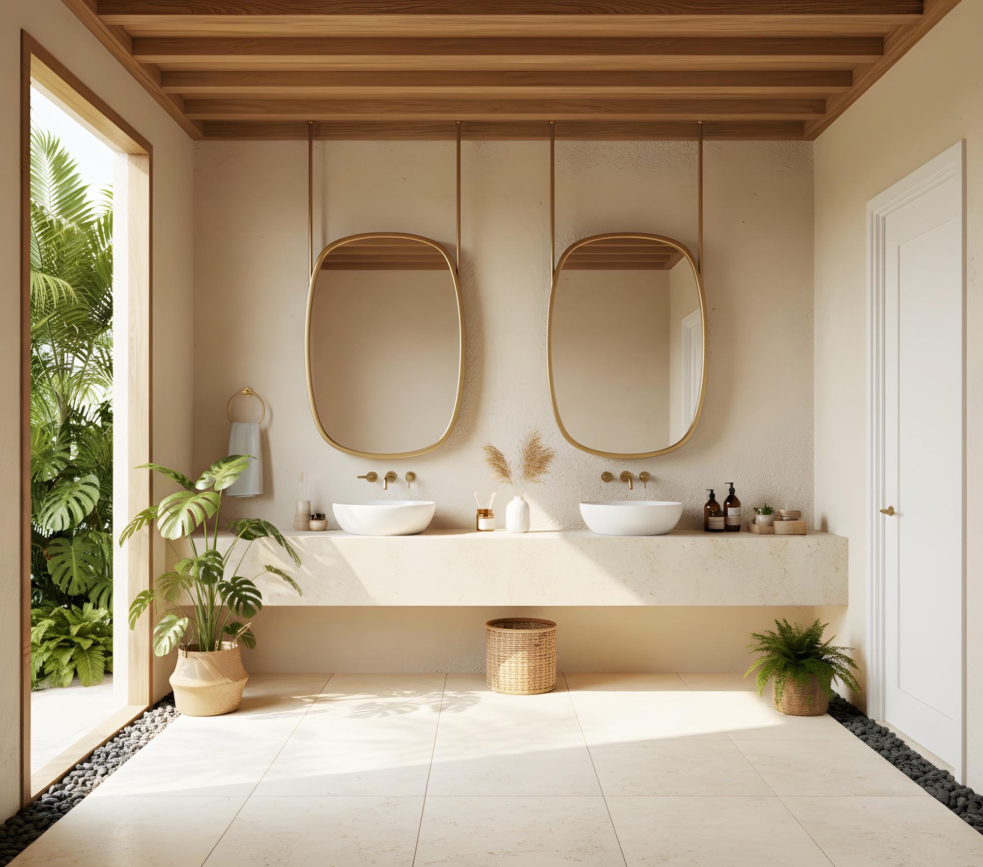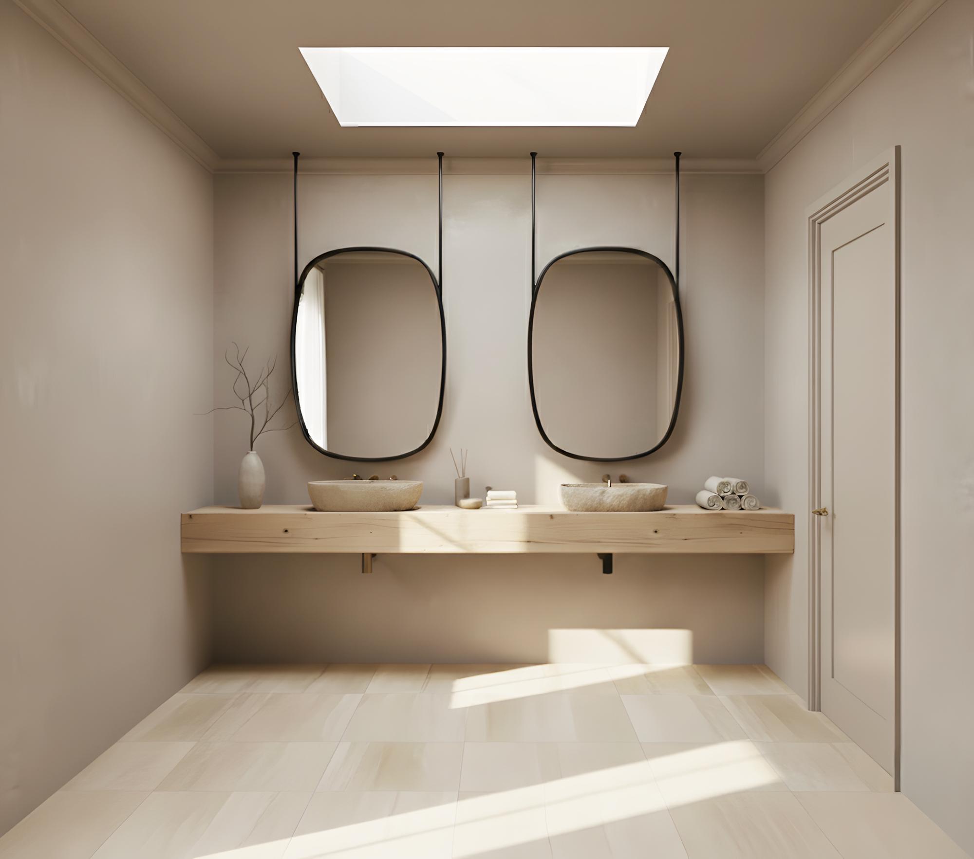 Transform your bathroom into a serene, modern sanctuary with this stunning hanging mirror.