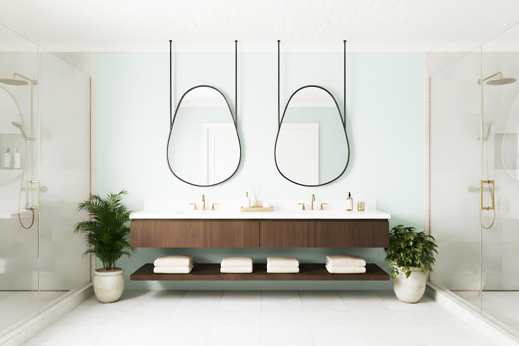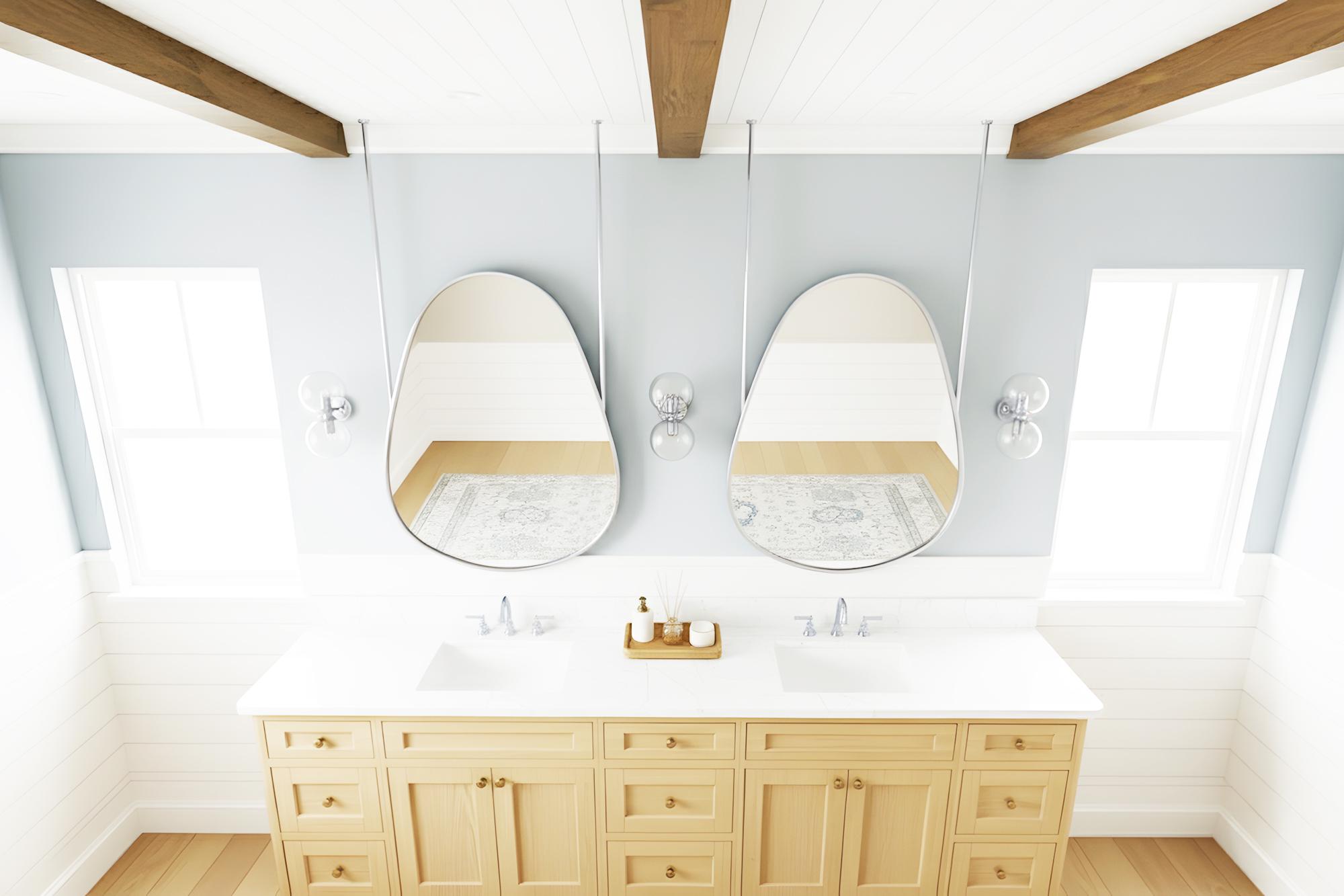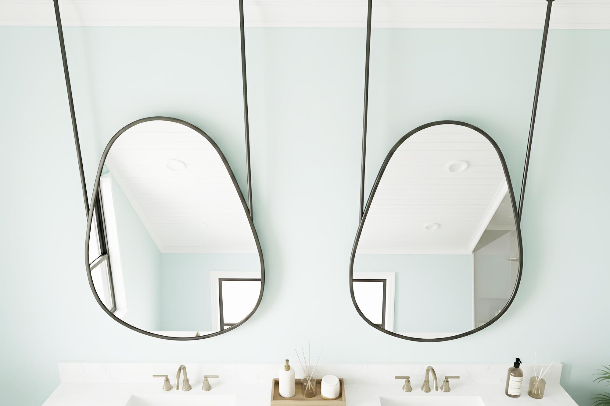 Transform your bathroom into a serene, modern sanctuary with this stunning hanging mirror.