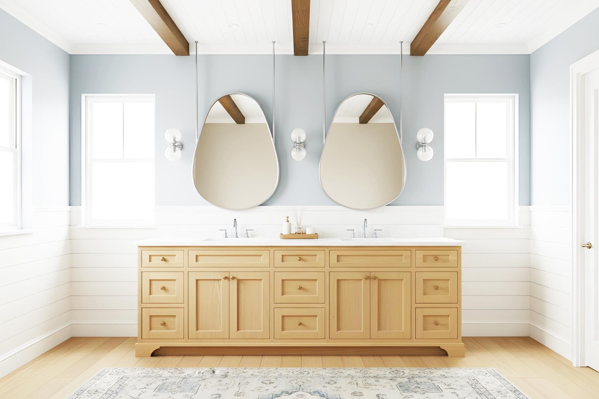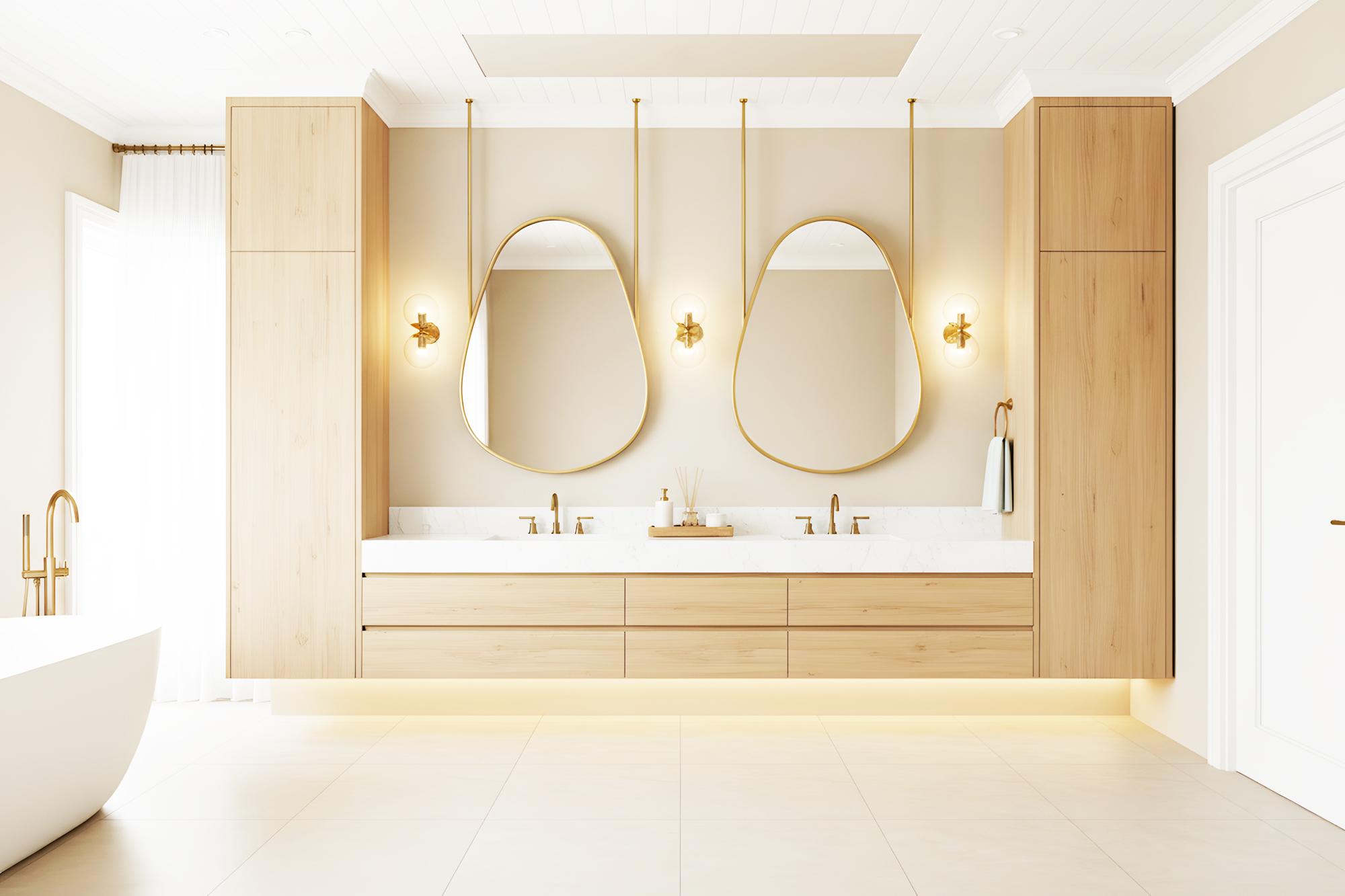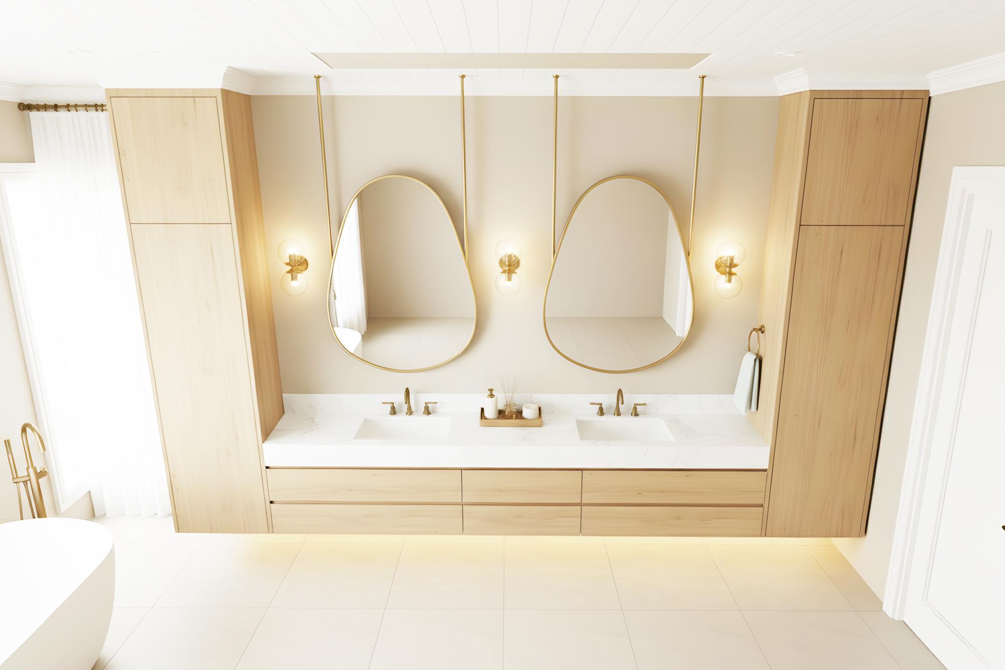 Transform your bathroom into a serene, modern sanctuary with this stunning hanging mirror.