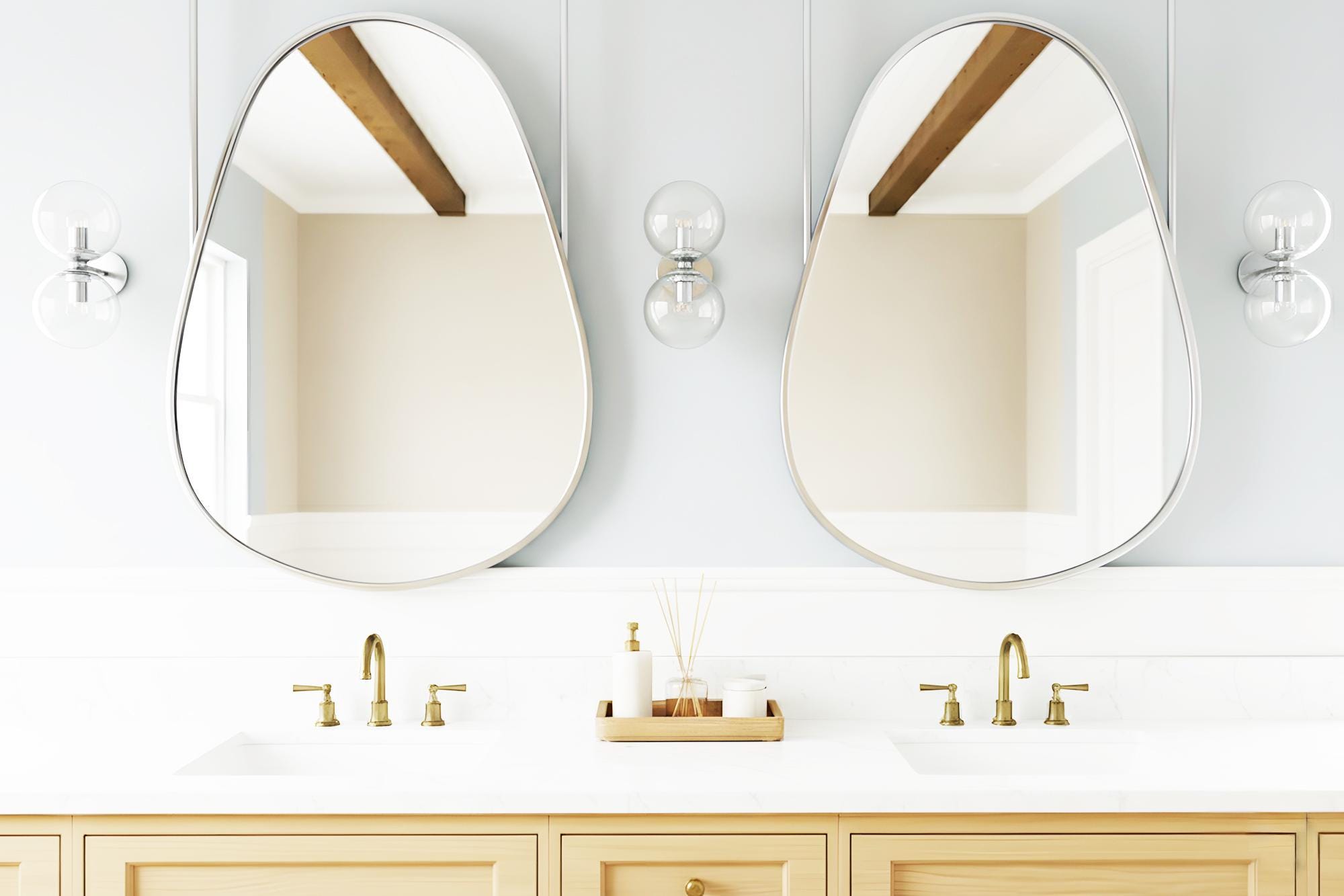 The premium metal frame provides durability and a refined finish, while the soft, asymmetrical shape brings a stylish, artistic feel. Perfect for double vanities, spa-inspired bathrooms, boutique hotels, or anyone looking to add a luxurious statement piece to their home.