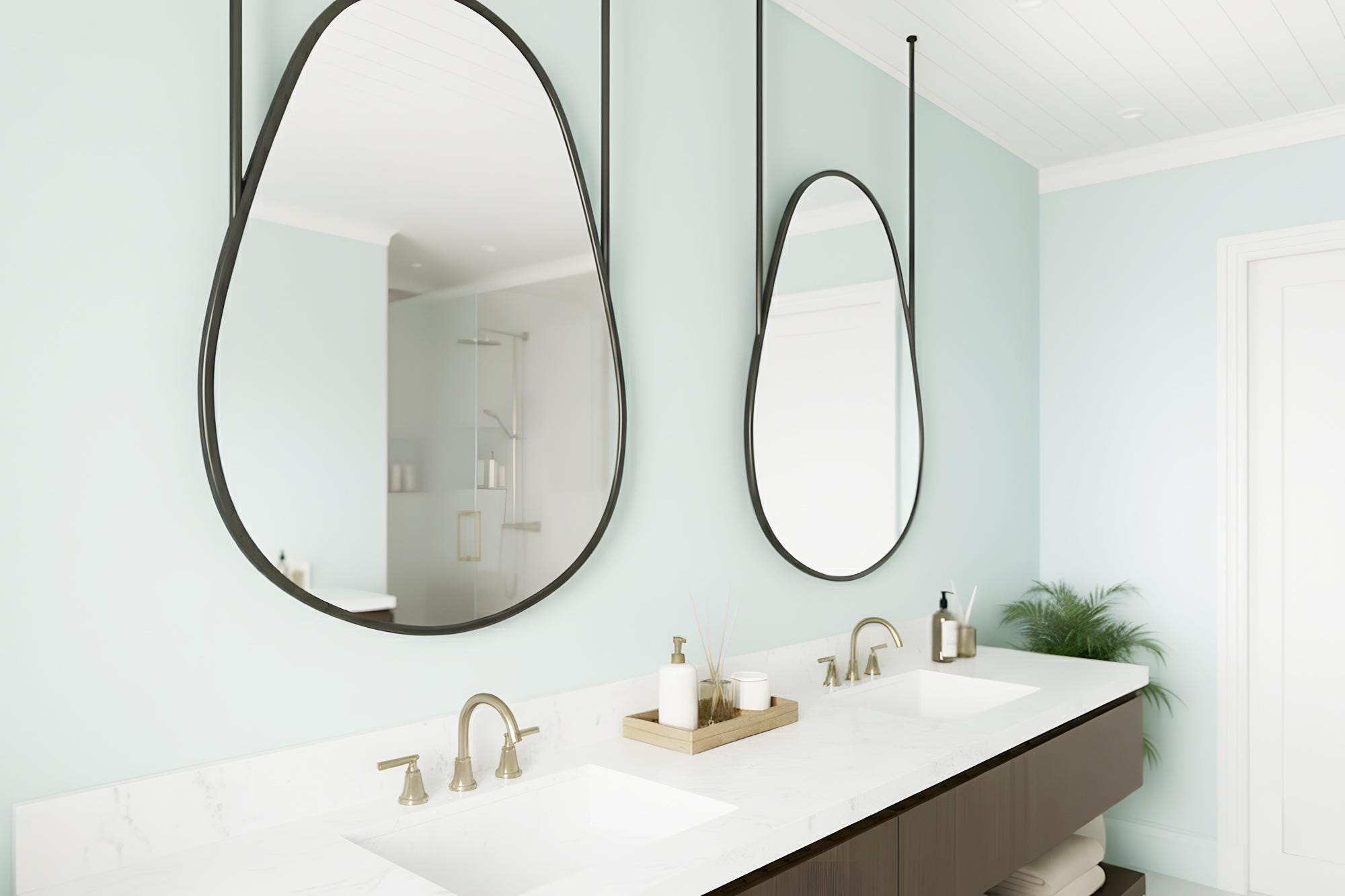 Bring a touch of modern elegance to your bathroom with this beautifully crafted ceiling-mounted mirror featuring a smooth, organic metal frame. Designed to elevate contemporary interiors, this mirror offers a unique suspended look that adds depth, sophistication, and architectural charm to any space.