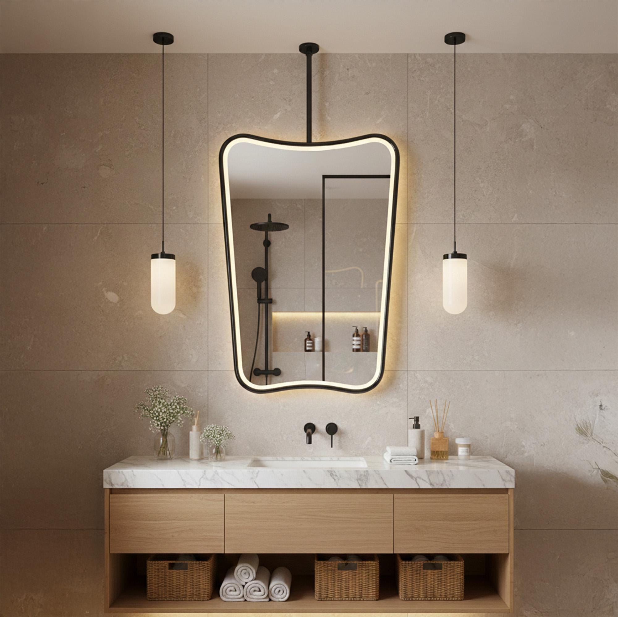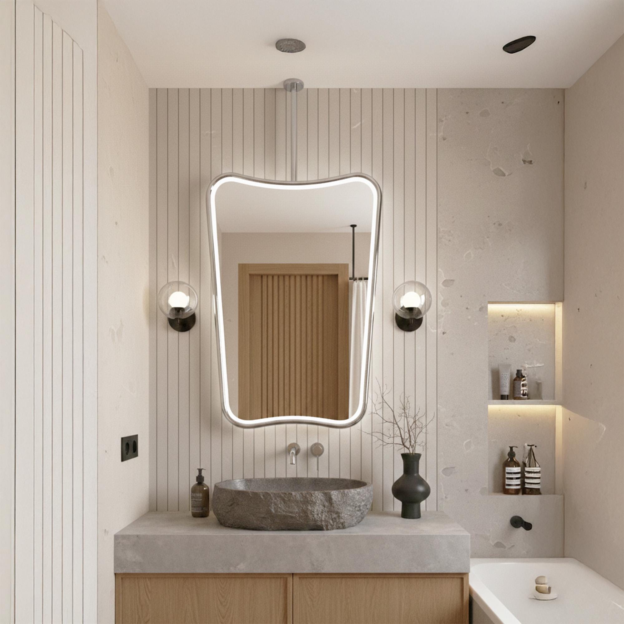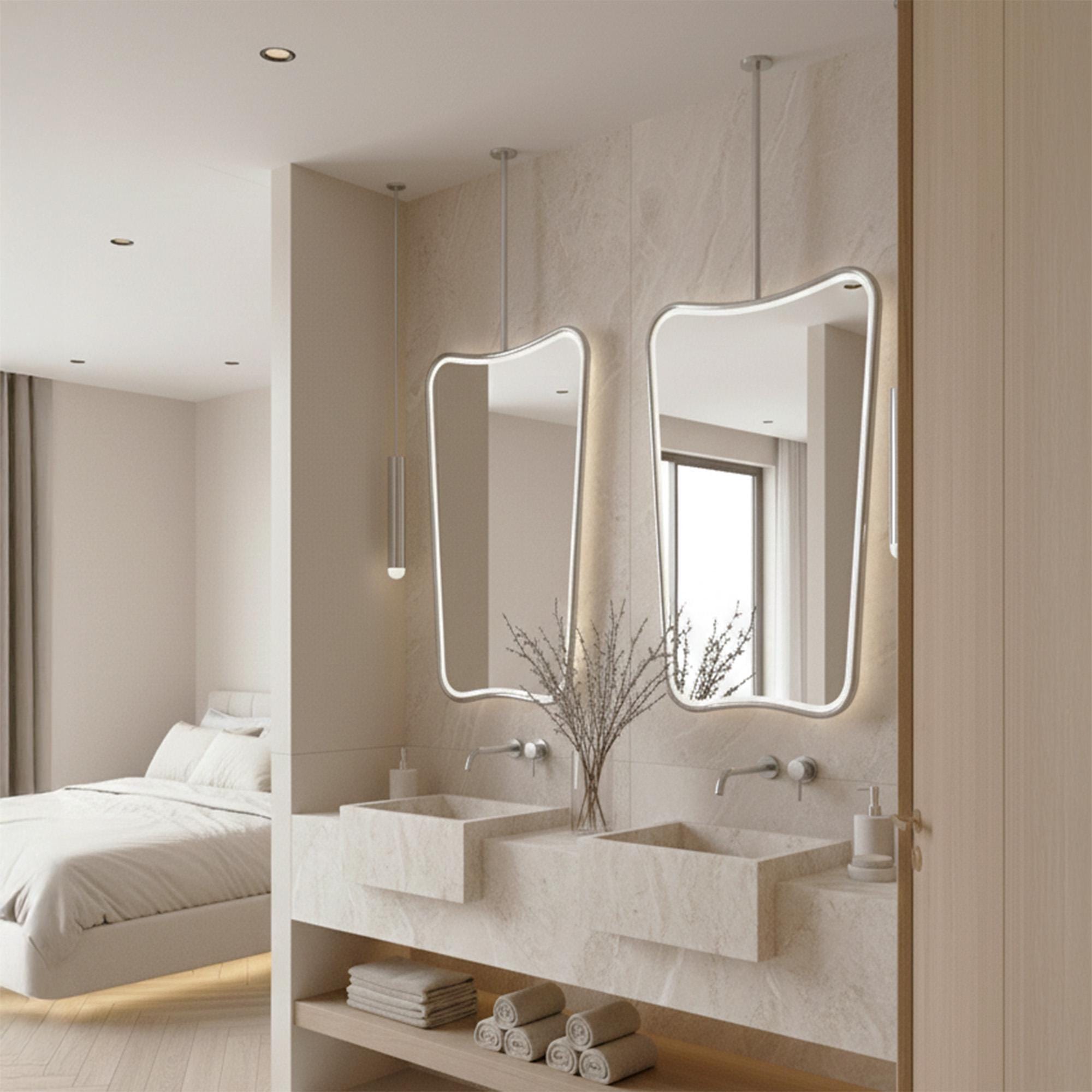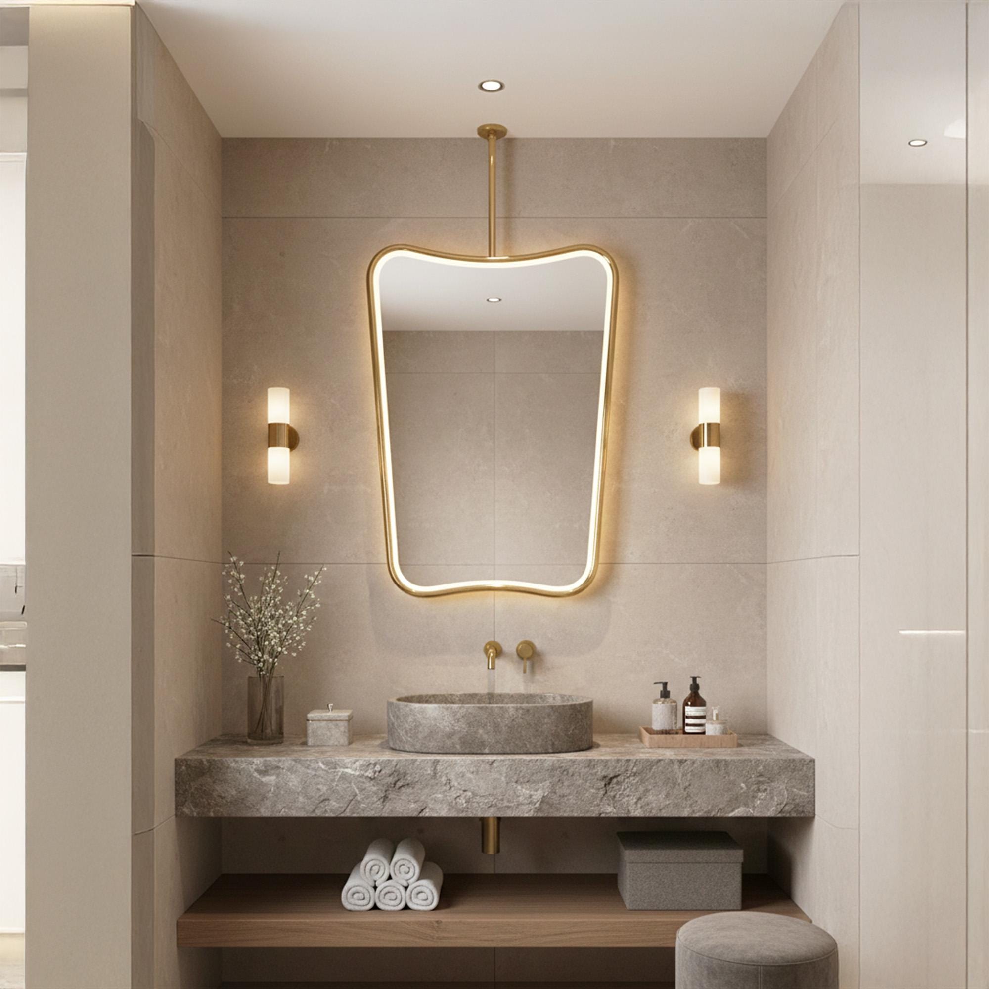 This mirror blends natural light with minimalist lines, creating a warm and balanced modern aesthetic. Pairs beautifully with neutral tones, wooden textures, and indoor plants for a calm and sophisticated atmosphere.