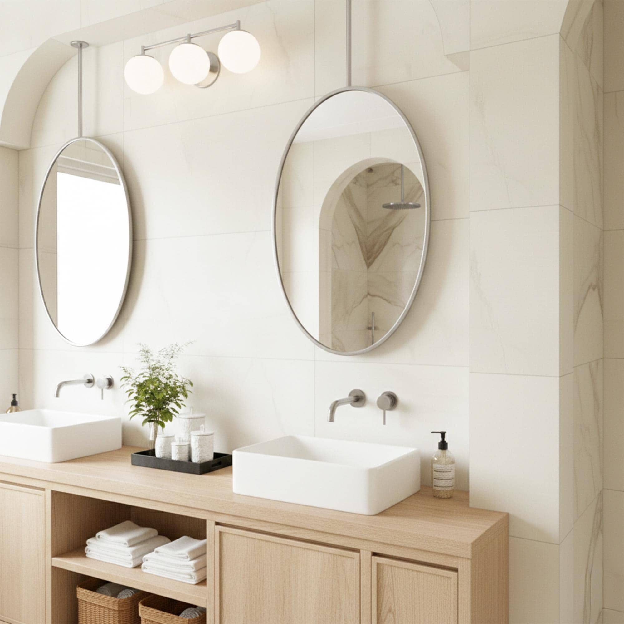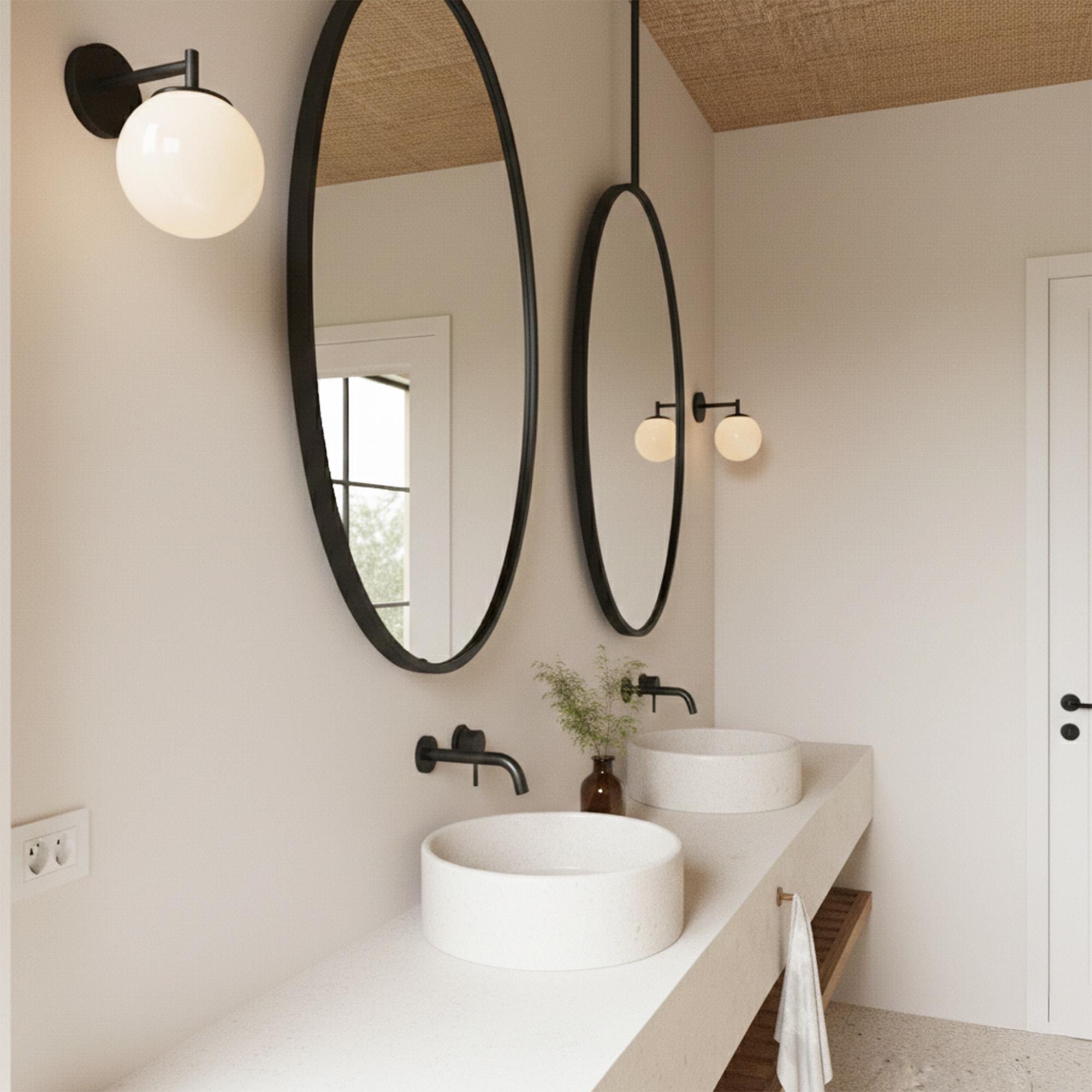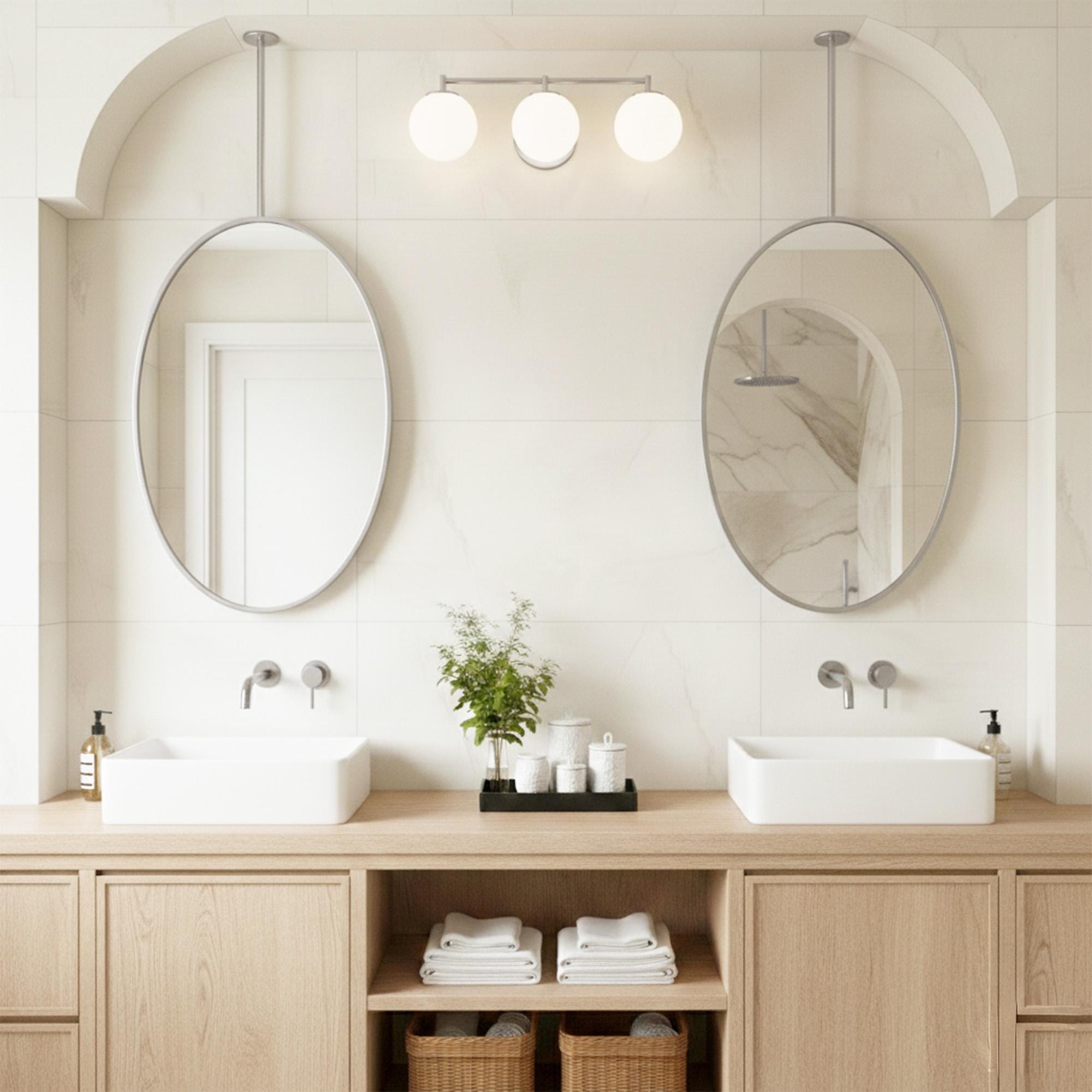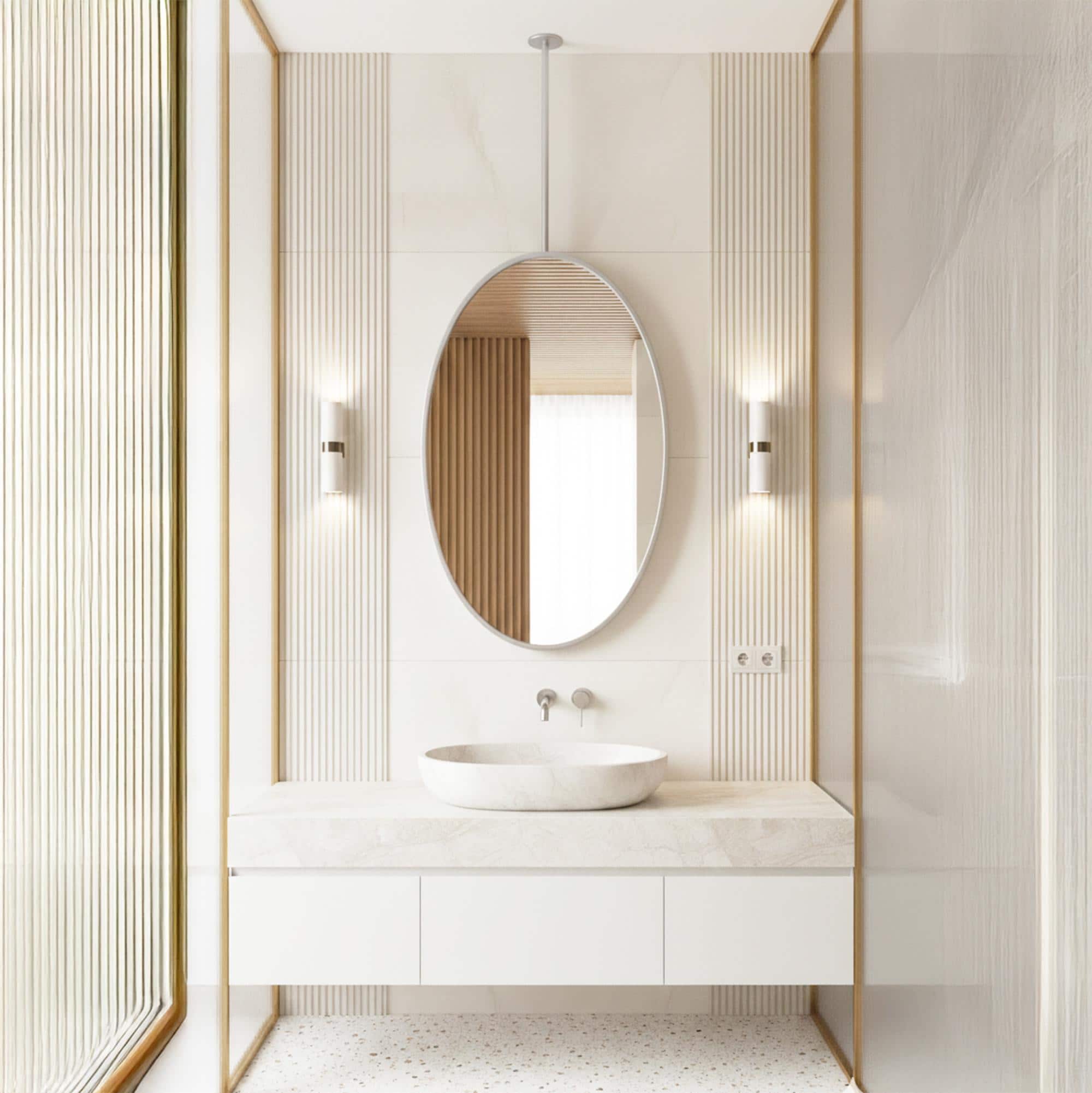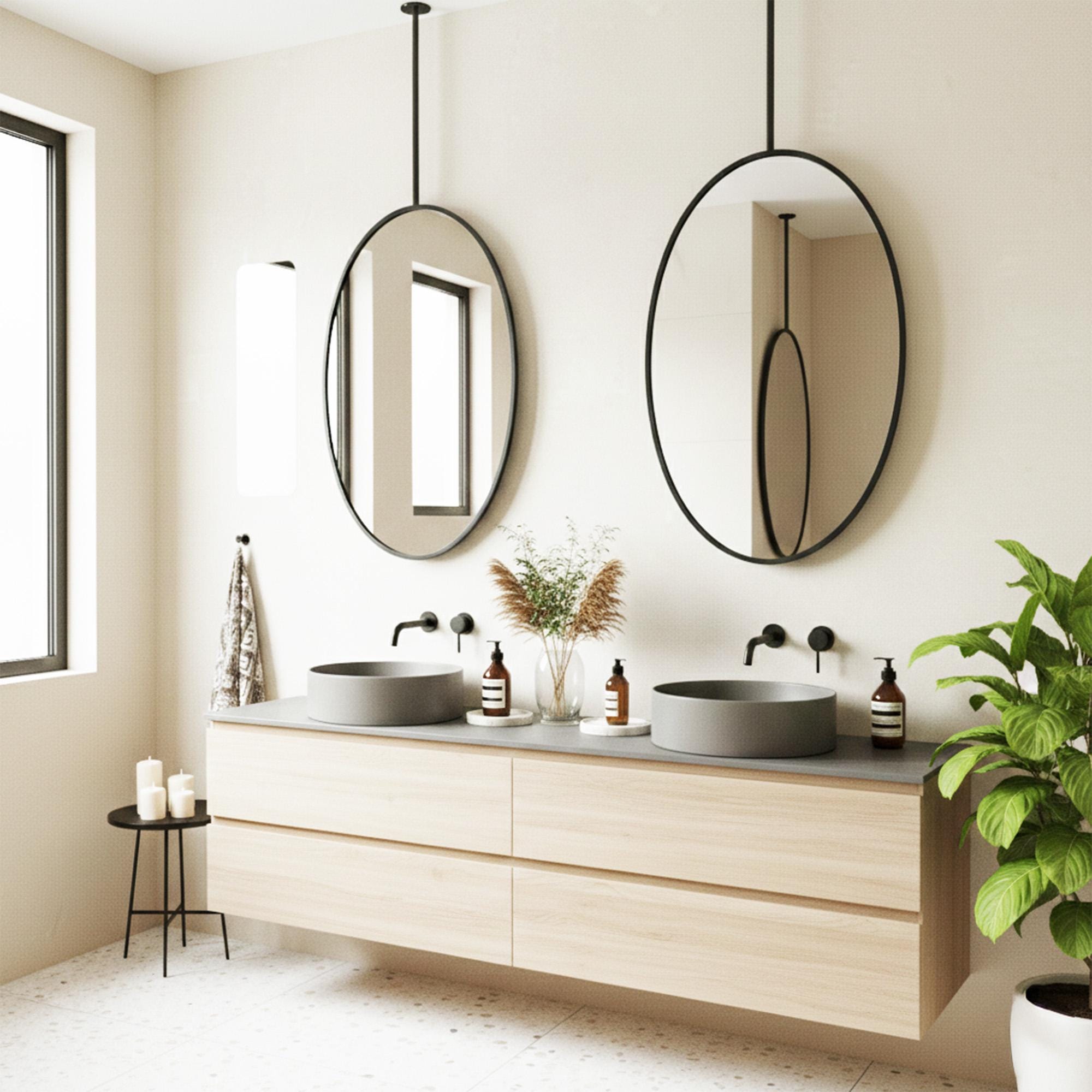 Transform your bathroom into a serene, modern sanctuary with this stunning hanging mirror.